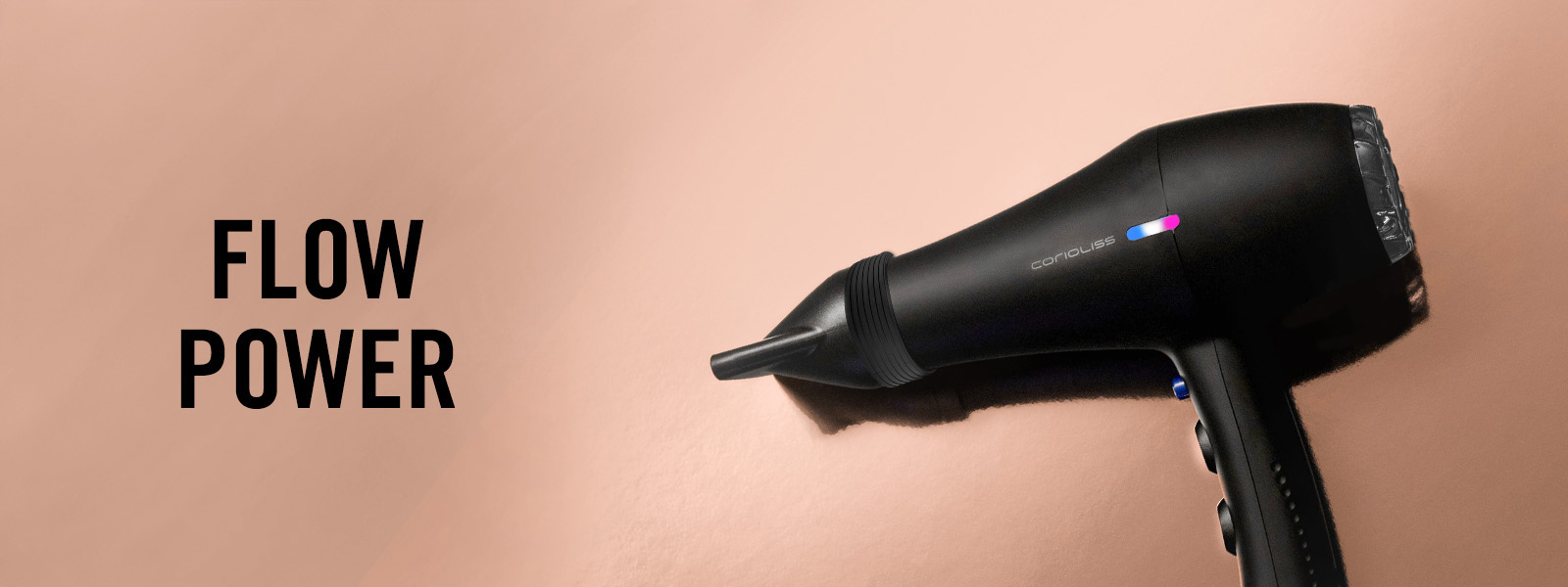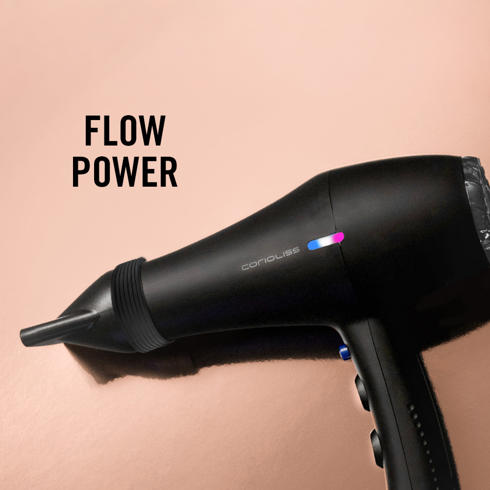 FLOW POWER BLACK CHROME This hair dryer features a powerful 2200W motor, three temperature settings, and two speed options. The cool shot button is perfect for setting your style. It includes two nozzles that provide precision and help achieve faster drying.
