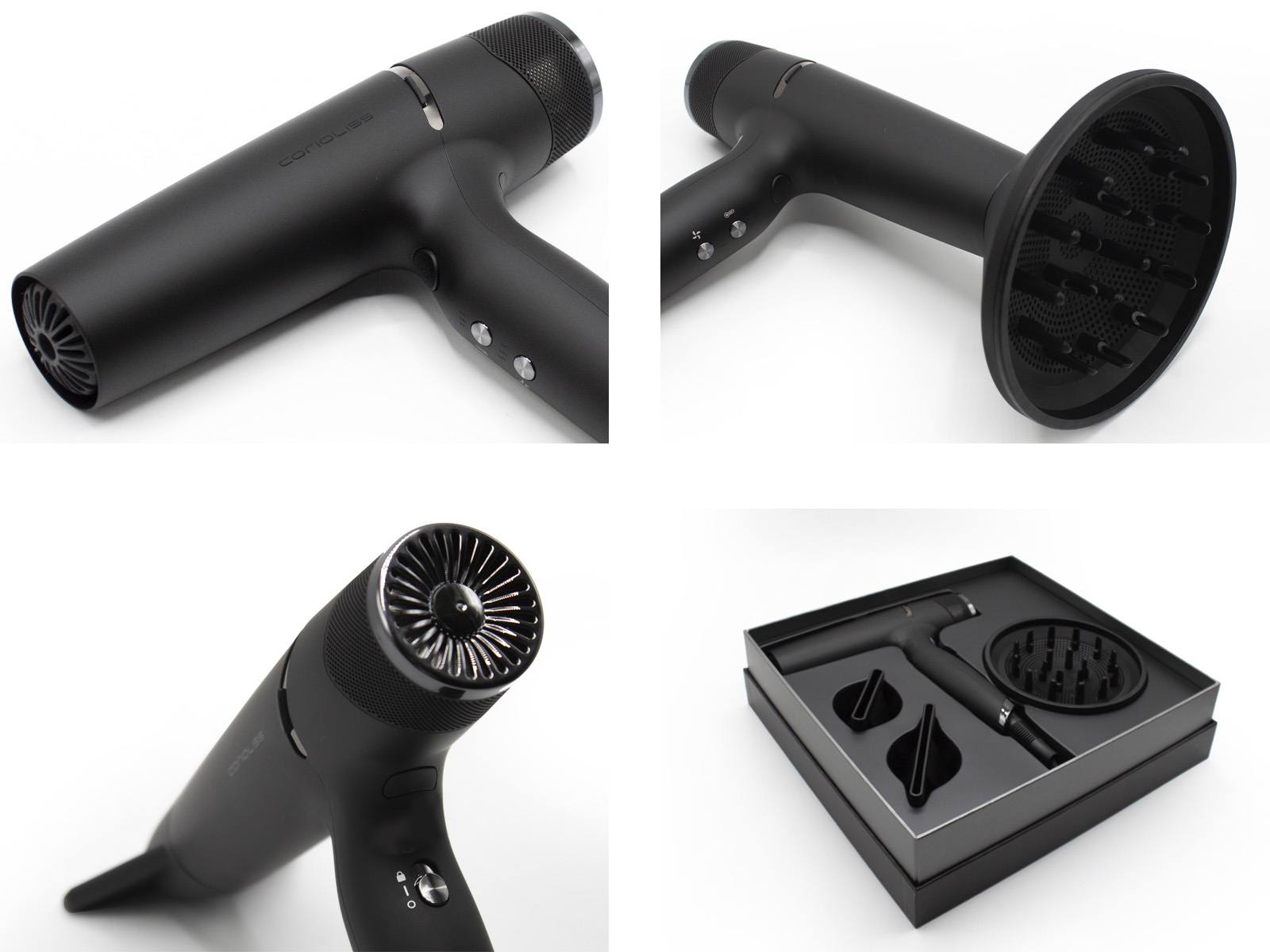 Includes 2 concentrator nozzles and 1 diffuser, allowing you to create any style for any hair type.